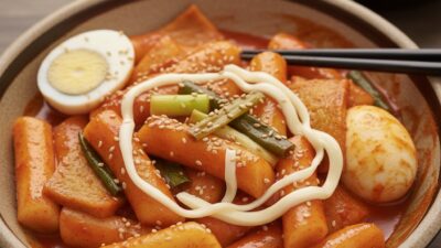 Perjalanan dimulai dari Asia Timur. Di tengah ramainya deretan ruko dan warung kaki lima, mata langsung tertuju pada gerai dengan menu hits Korea: Daebak Tokpoki. Jajanan dari tepung beras kenyal (tteok) yang disajikan dengan saus gochujang pedas manis ini sukses menarik perhatian pembeli muda.