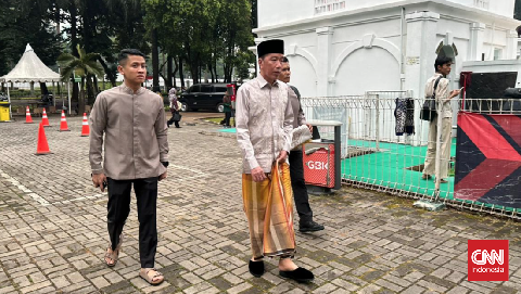 Presiden ke-7 RI Joko Widodo hadiri salat Idulfitri di Jakarta. Foto: CNN Indonesia/Patricia Diah Ayu