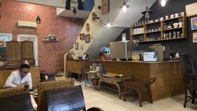 Di dinding, Anda akan menemukan bingkai berisi jurnal media berita zaman dahulu, hiasan wayang kulit, hingga sepeda ontel, yang berpadu kontras namun harmonis dengan koleksi Hot Wheels yang berjajar rapi di rak. Perpaduan ini menciptakan suasana yang tenang, cocok untuk bekerja, berkumpul, atau sekadar menikmati waktu santai. Tak heran, tempat ini disebut-sebut sebagai salah satu kedai kopi dengan suasana paling hommy di Bekasi.