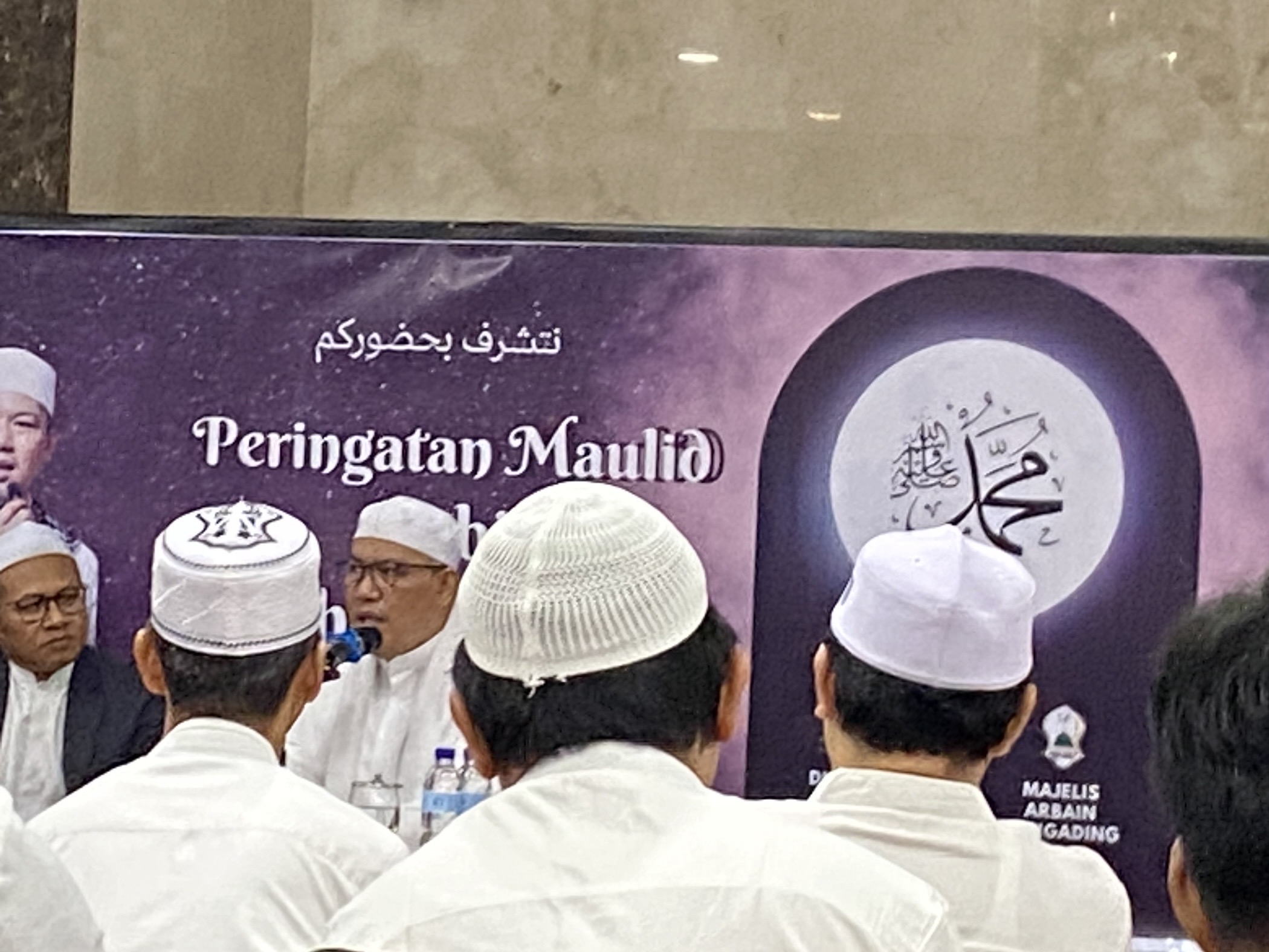 Jamaah Majelis Maulid Arba’in Puri Gading mengikuti acara Maulid Nabi Muhammad SAW di Masjid An Nur Puri Gading.