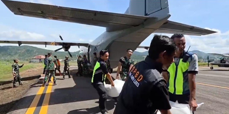 TNI AL mengerahkan Pesawat NC 212-200 Aviocar dengan nomor lambung U-6211 untuk menembus wilayah terdampak. Pesawat tersebut mengangkut bantuan logistik berupa sembako dengan total berat mencapai 299 Kg.
